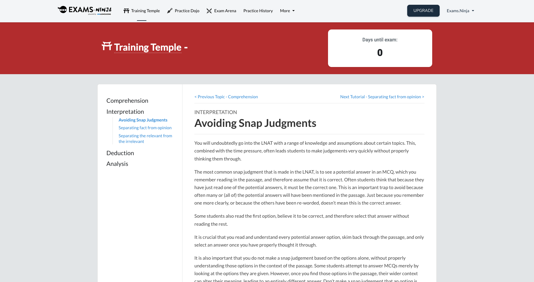 - Full tutorials and strategy guides. Exclusive insider tips and comprehensive lessons on each section to help you develop into an LNAT pro. Knowing fact from opinion will become second nature.