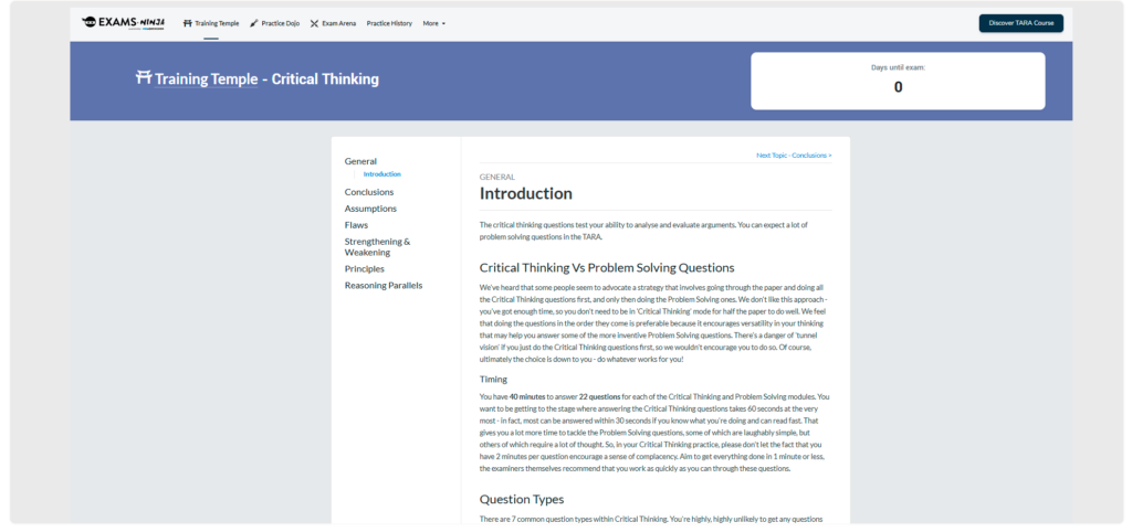 Get ready for the TARA with our brand new immersive prep experience! Dive into engaging tutorials, practice questions, and an interactive exam simulator, ensuring painless preparation for the test.